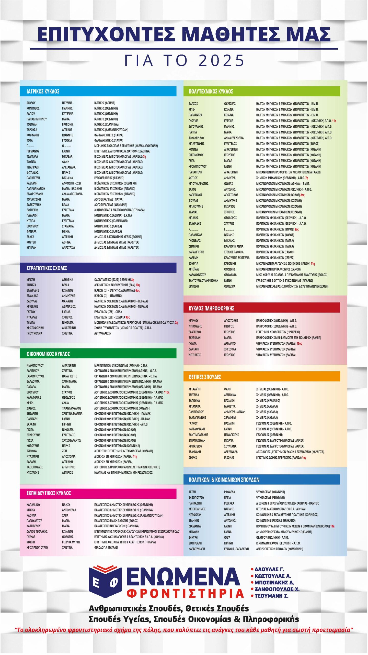 Πανόραμα Τμημάτων / Σχολών Πανεπιστημίων